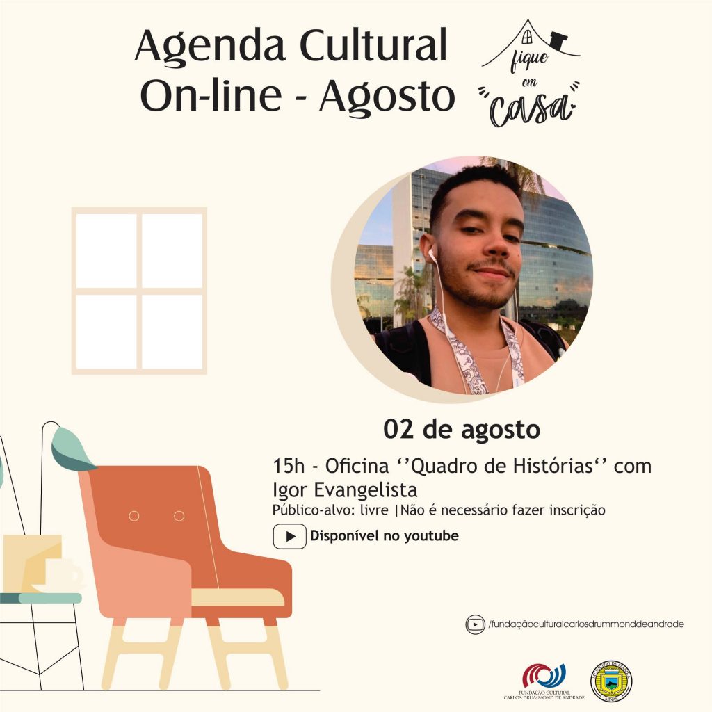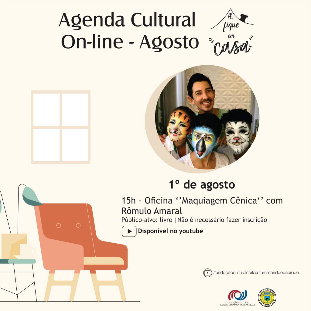Em agosto, a agenda cultural on-line da Fundação Cultural Carlos Drummond de Andrade (FCCDA) contará com oficinas, contação de histórias, palestras, exposição e apresentações musicais. Os conteúdos serão disponibilizados para a população por meio de vídeos no YouTube e transmissões ao vivo no Facebook.