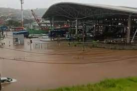 Em imagens feitas por populares, é possível ver pessoas escalando a viga de um viaduto para não serem carregadas pela força da enchente.