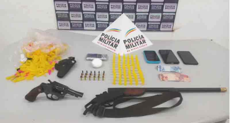 Na noite de terça-feira (15/10), por volta das 18hs50, a Polícia Militar de Minas Gerais, por meio do 26º Batalhão, realizou uma operação que resultou na prisão de quatro homens, com idades de 20, 22, 29 e 30 anos, suspeitos de envolvimento com o tráfico de drogas e associação criminosa, além da apreensão de armas de fogo e entorpecentes.
